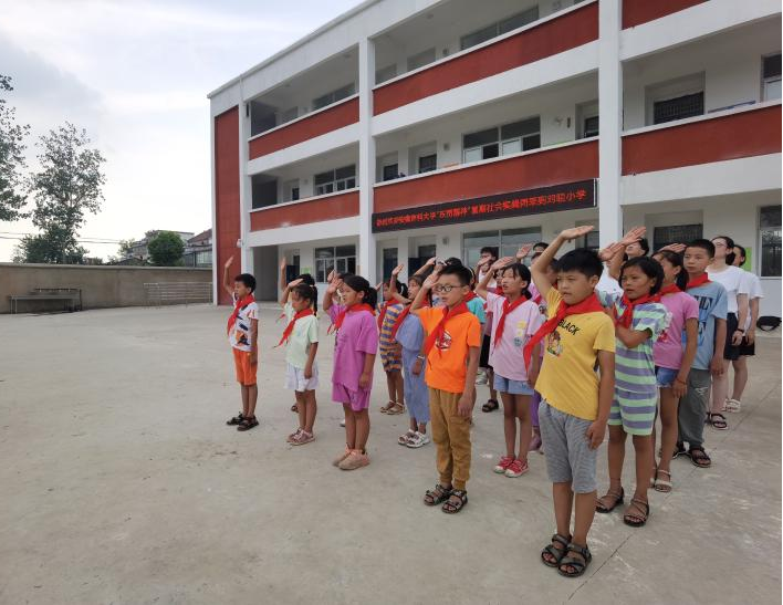 在公益课间隙,队员们走下讲台,大手牵小手,引导小学生们有秩序地走向操场中央,举行庄严的升旗仪式,汇聚起向上向善的强大精神力量。