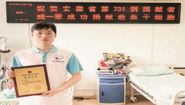 臧一霏成功捐献造血干细胞。 “3年前遗憾错过,这次终于能成功捐献了!”4月7日中午,经过近5个小时的采集,滁州小伙臧一霏在合肥成功捐献284毫升造血干细胞,为外省一位白血病患者送去生的希望。平日里,臧一霏还积极参加献血...