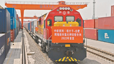 安徽省供销合作社联合社旗下的辉隆股份,是全国供销社系统农资流通行业首家上市企业,如今已经发展成为综合性为农服务龙头企业。图为今年5月18日,中欧班列辉隆股份氯化钾专列,满载进口钾肥,经霍尔果斯口岸入境。 通讯员 曹懿 摄...