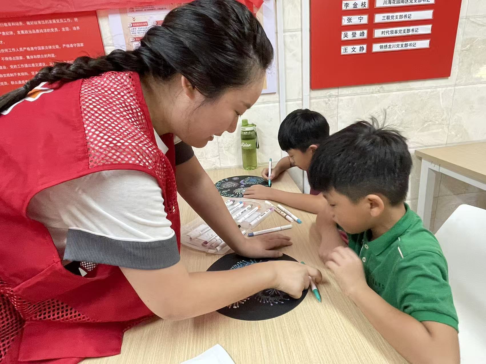 自7月9日开班以来,每周三至周五,这里都充满童声笑语,为期8周的暑托班已陪伴孩子们走过7周,服务147人次。上午是安静的自习时光,大学生志愿服务队的1-2名志愿者会细心看护,督促孩子们完成作业,下午是“解锁兴趣”的快乐时刻,周三的“童‘画’世界”、周四的“魔力实验室”,绘画、手工、科普课程每次都有新主题,孩子们在动手实践中学习科学奥秘。