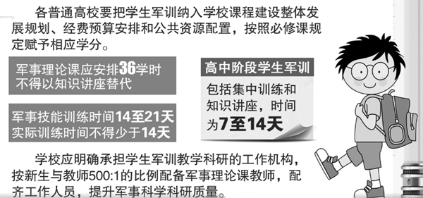 据安徽商报报道,记者从合肥市政府获悉,“十三五”期间,安徽省将成立普通高校军事教学指导委员会,建立军事课教学评价机制、规范军事课教材编写,建设若干军事课优质课程和优质教材,实行教材准入制度,确保教材的政策性、权威性和规范性。(记者 梁巍)
