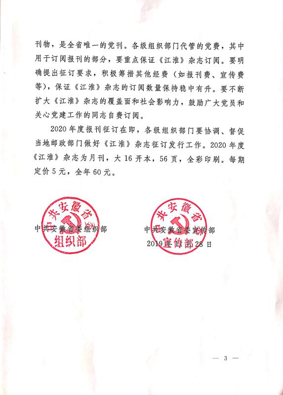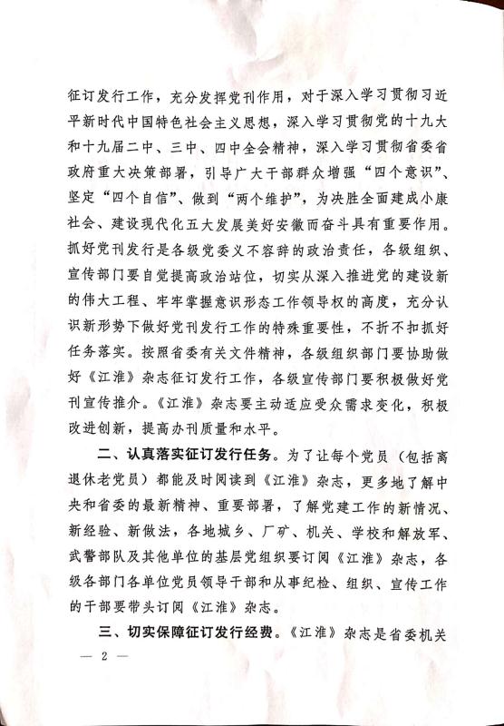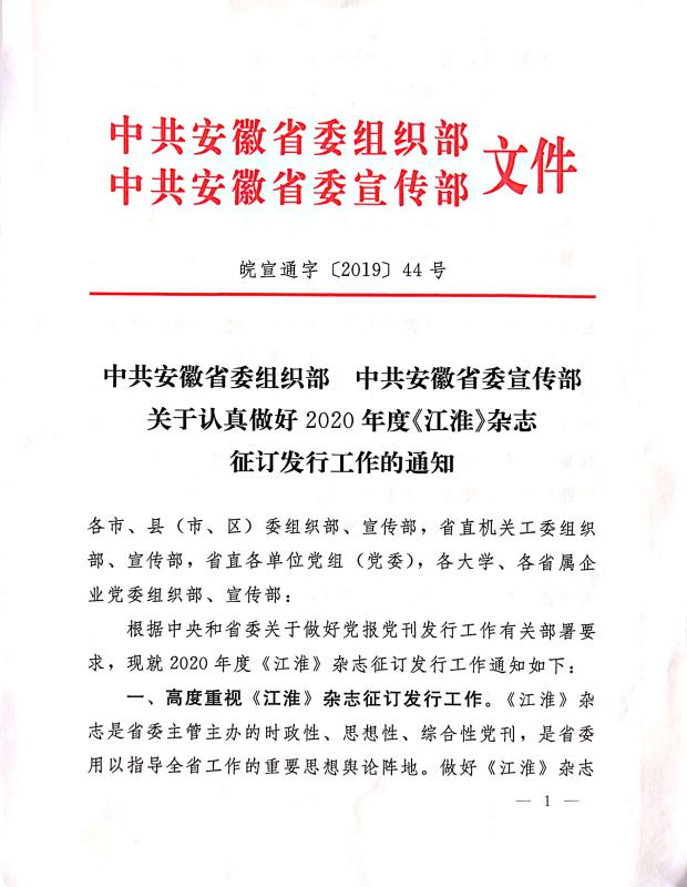 关于认真做好2020年度《江淮》杂志征订发行工作的通知