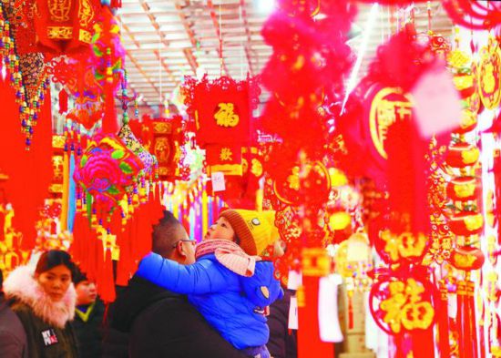 随着春节的临近,市民对于带有喜庆色彩的挂饰和福字等物品的需求量也越来越大。1月30日,合肥市民在街头选购春节挂饰。