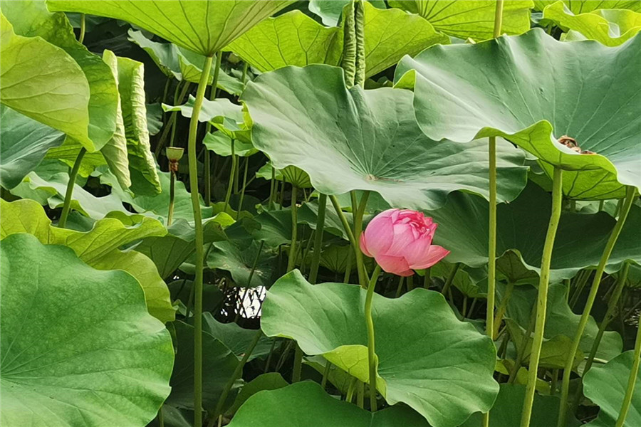 夏日炎炎,酷暑难耐,没有赏过荷花的夏天是不完整的。合肥包公园的湖面上,一眼望去,层层叠叠的荷叶苍翠欲滴,而在荷叶间,荷花或含苞待放或尽情盛开……微风拂过,叶与花微微颤动,摇曳生姿,格外动人。(史洪芳/摄)