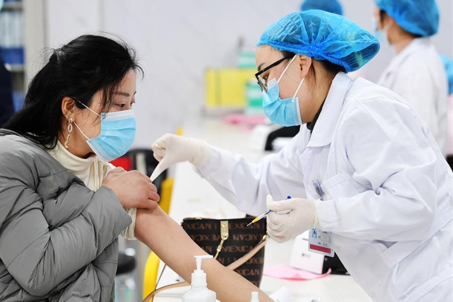 1月11日,合肥市肥东县店埠镇中心卫生院,来自全县范围内的特殊工作人员在接种新冠肺炎疫苗。连日来,肥东县境内物流、冷链、教师、行政等需要接触大量人群的特殊工作人员,陆续免费接种新冠肺炎疫苗,截至目前接种人数已达8000人,根据摸底数据,疫苗接种人数已近半。