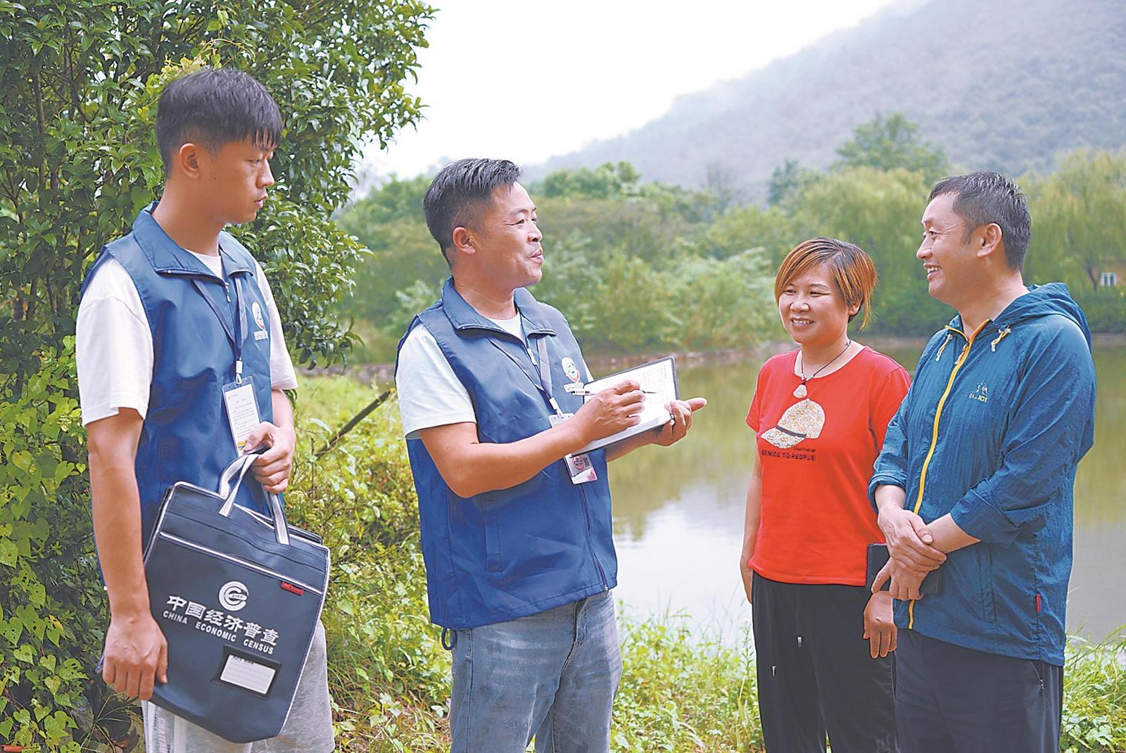 8月22日,怀宁县凉亭乡青山村普查员在辖区一家企业开展第五次经济普查摸底登记工作。