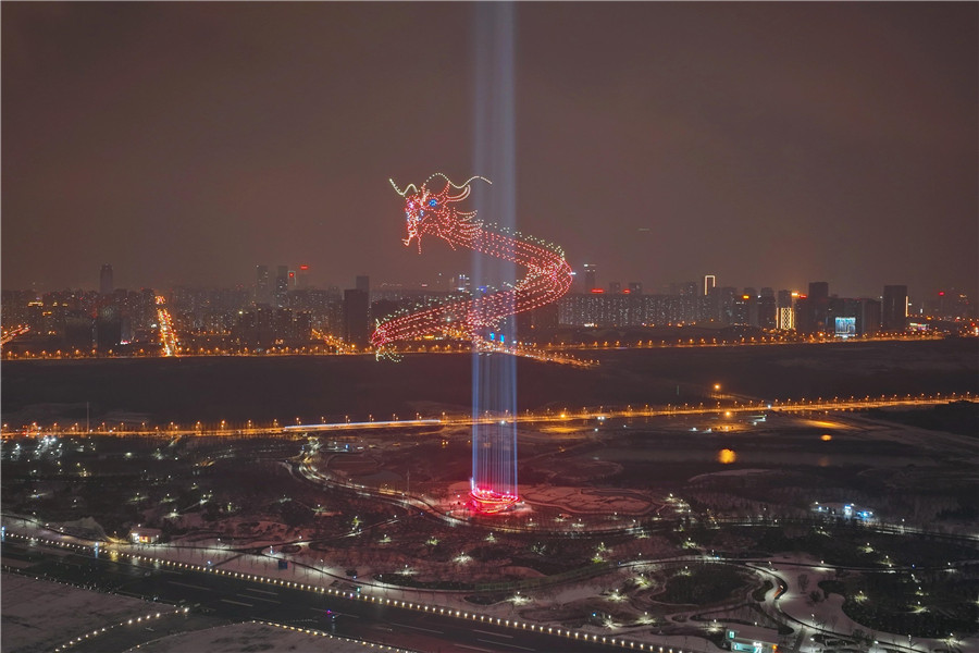 2月24日晚,合肥骆岗公园上空,1600架无人机进行阵列表演,上演炫酷灯光秀,庆祝元宵佳节。记者 程 兆 许根宏 摄