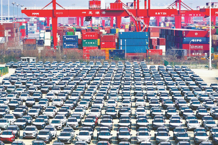 3月10日,安徽港口集团芜湖港朱家桥港区,即将出口海外的奇瑞汽车整齐停放在货场上。奇瑞集团1月至2月累计销售汽车348019辆,同比增长69.5%,保持了今年以来“开跑即冲刺”的强劲势头。