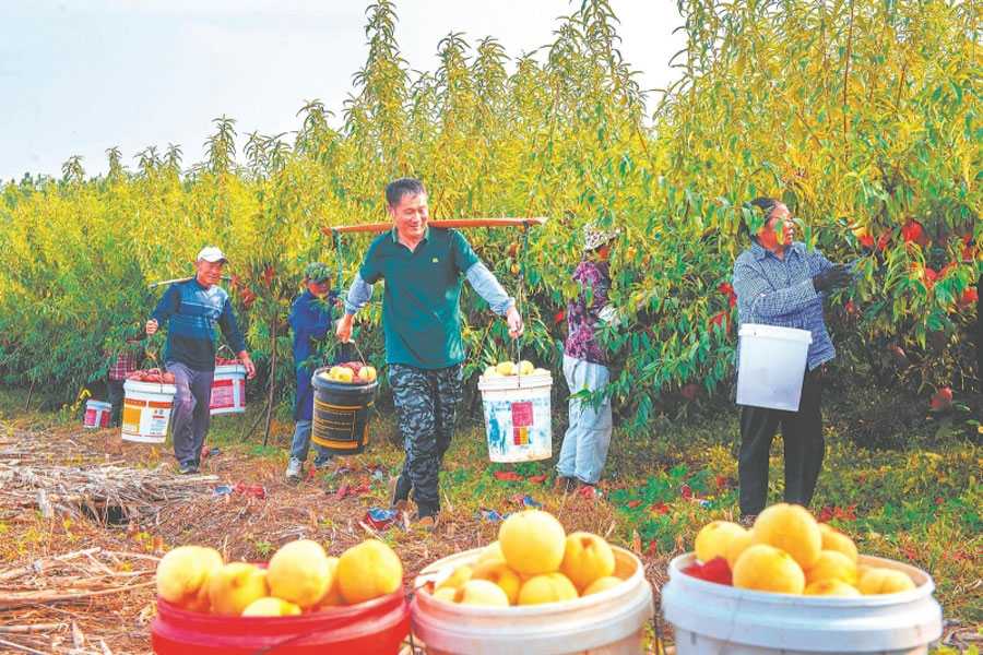 连日来,村民在来安县杨郢乡沈子芳家庭农场采摘冬桃。该农场依托江淮分水岭独特的地形和气候特点,种植山杏、冬桃等特色水果,通过“产业+旅游”融合发展,帮助农民增收。