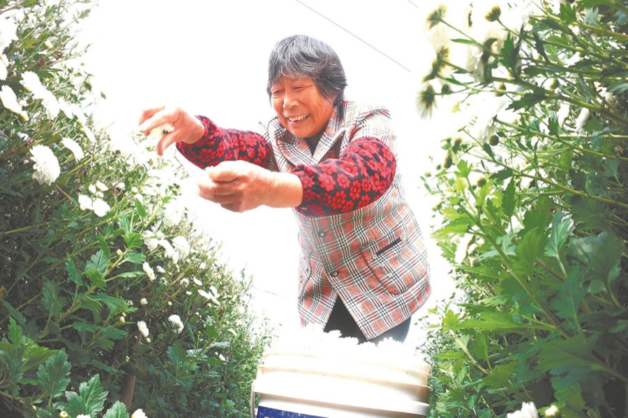 10月21日,歙县富堨镇青山村农民首日采摘第二季白菊花,该村种植的白菊花品种每年7月、10月分别采摘一次,两季采摘质量和数量均有提高,亩均收入都超万元。