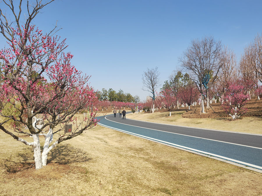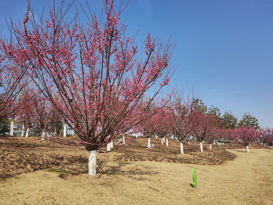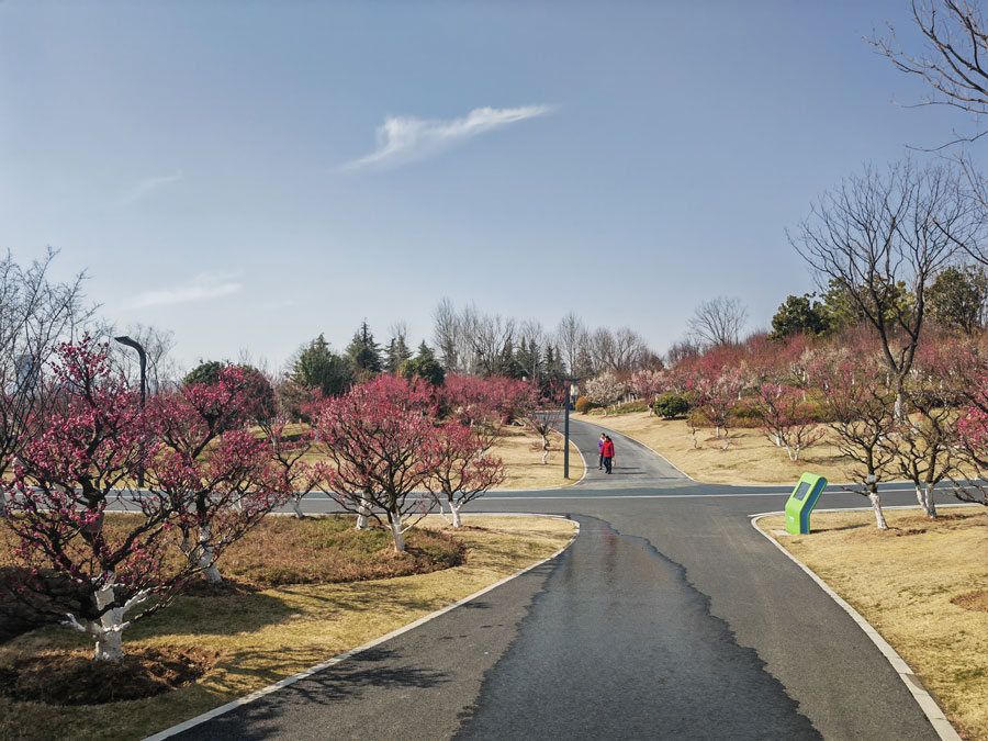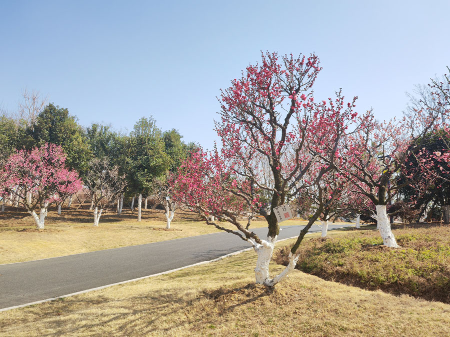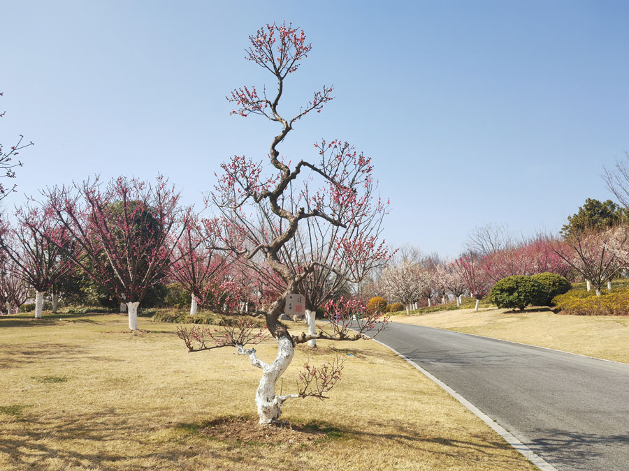 2月18日,天朗气清,阳光明媚。合肥园博园安徽园内的梅花次第绽放,春意渐浓。(