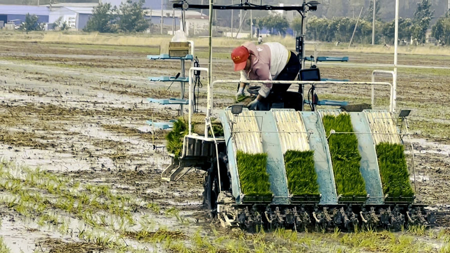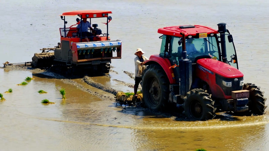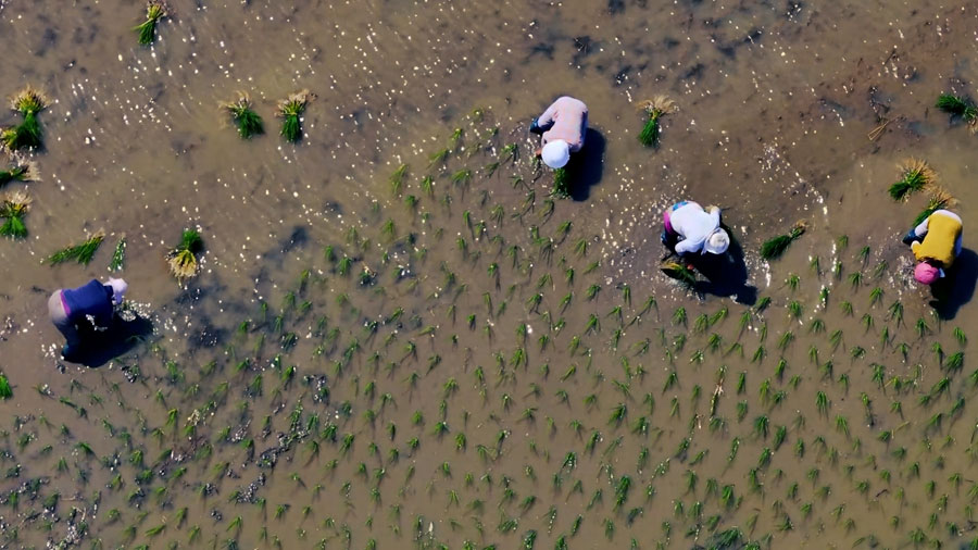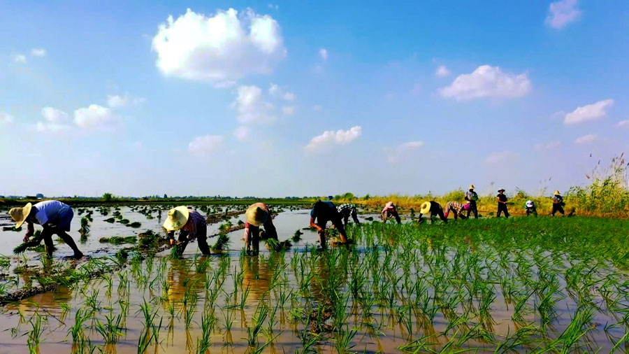 安徽颍上:皖北水乡插秧忙