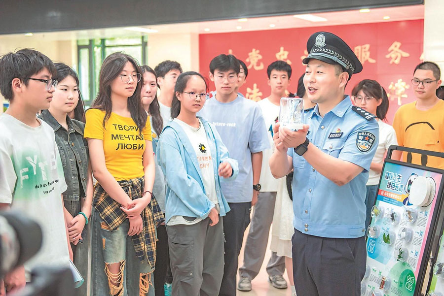 6月18日,马鞍山市花山区沙塘社区联合沙塘派出所,在马鞍山二中外国语分校开展禁毒宣传进校园活动,进一步增强青少年“识毒、防毒、拒毒”的意识。通讯员 胡智慧 王素英 摄