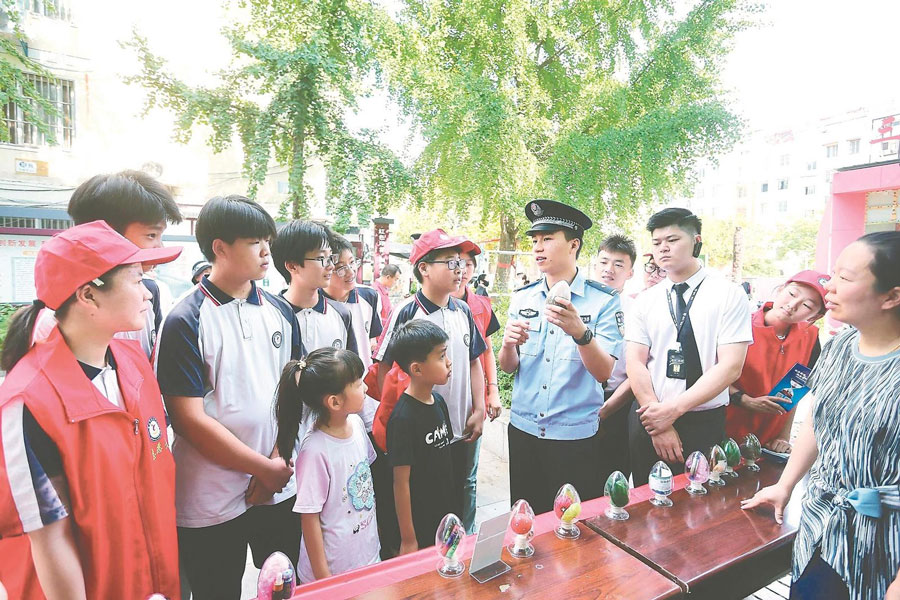 6月24日,淮北市公安局相山公安分局三堤口派出所联合三堤口街道开展禁毒宣传进社区活动,增强群众防范毒品的意识和能力。通讯员 万善朝 摄
