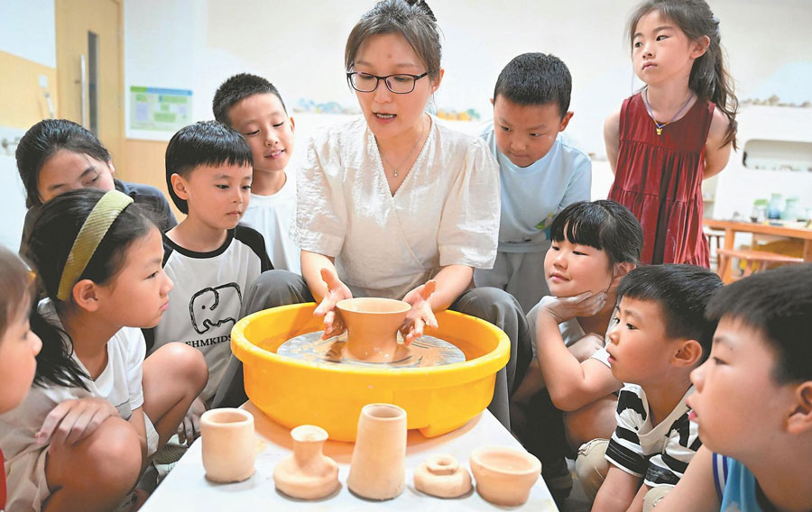 近日,亳州市青少年活动中心,孩子们在老师的指导下学习陶艺。暑假期间,亳州市不少小朋友来到青少年活动中心,学习舞蹈、戏曲、陶艺、绘画等,增长才艺,丰富假期生活。通讯员 刘勤利 摄