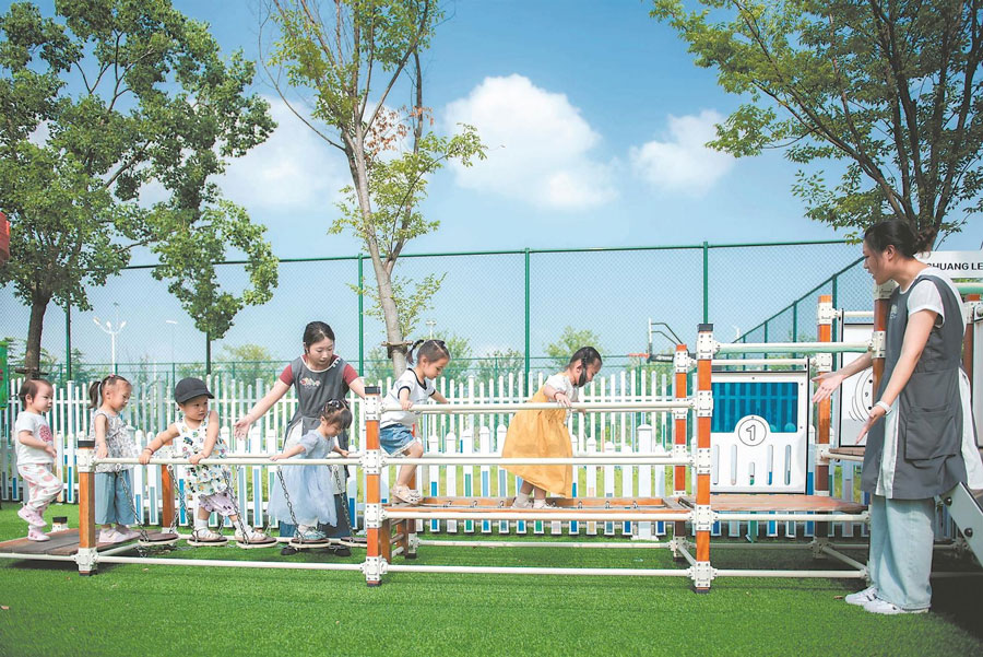 日前,来安县人民医院托育中心的孩子在老师的带领下,正在玩感统滑滑梯。该中心专为医院职工子女开设2个托班40个托位,配师资9人,是滁州首家正式运营的公立医院普惠托育园。2024年,该医院入围全国“建设家庭友好型工作场所典型案例”,荣获“2024年度全国爱心托育用人单位”称号。通讯员 吕华 摄