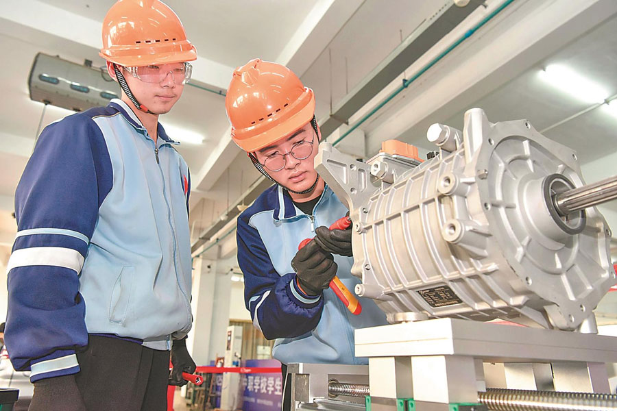 11月15日,参赛选手在2025年铜陵市中职学校学生技能大赛中进行新能源汽车维修赛项的比拼。此次比赛旨在推动中等职业学校教育教学改革,展示中职师生职业技能操作水平。通讯员 储著传 摄