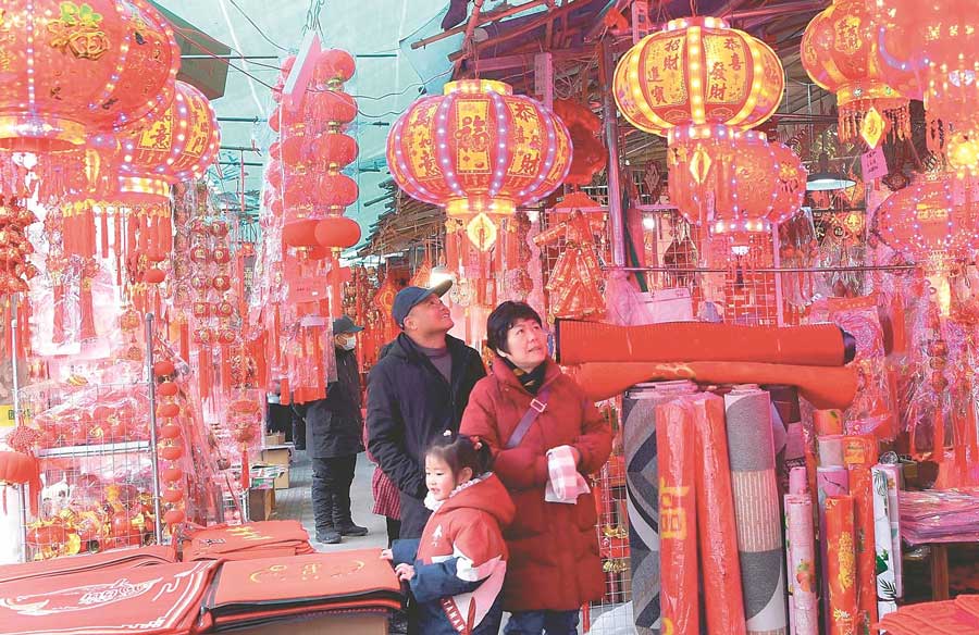 2月8日,在舒城县一处集市,市民在选购春节饰品。春节临近,市民利用周末逛大集,购年货,迎接新春佳节。特约摄影 陈力 摄