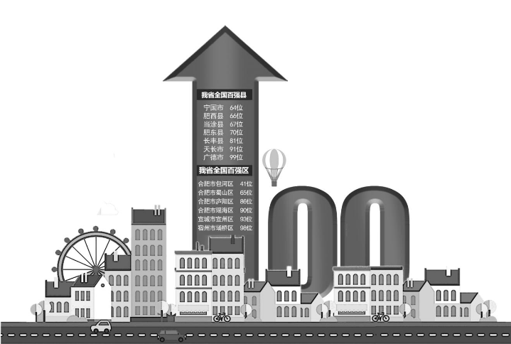 10月8日,人民日报发布《2019年中国中小城市高质量发展指数研究成果》,并公布2019年度全国综合实力百强县市排序。其中,宁国市以排序64位、肥西县66位、当涂县67位、肥东县70位、长丰县81位、天长市91位、广德市99位进入全国综合实力百强县市。