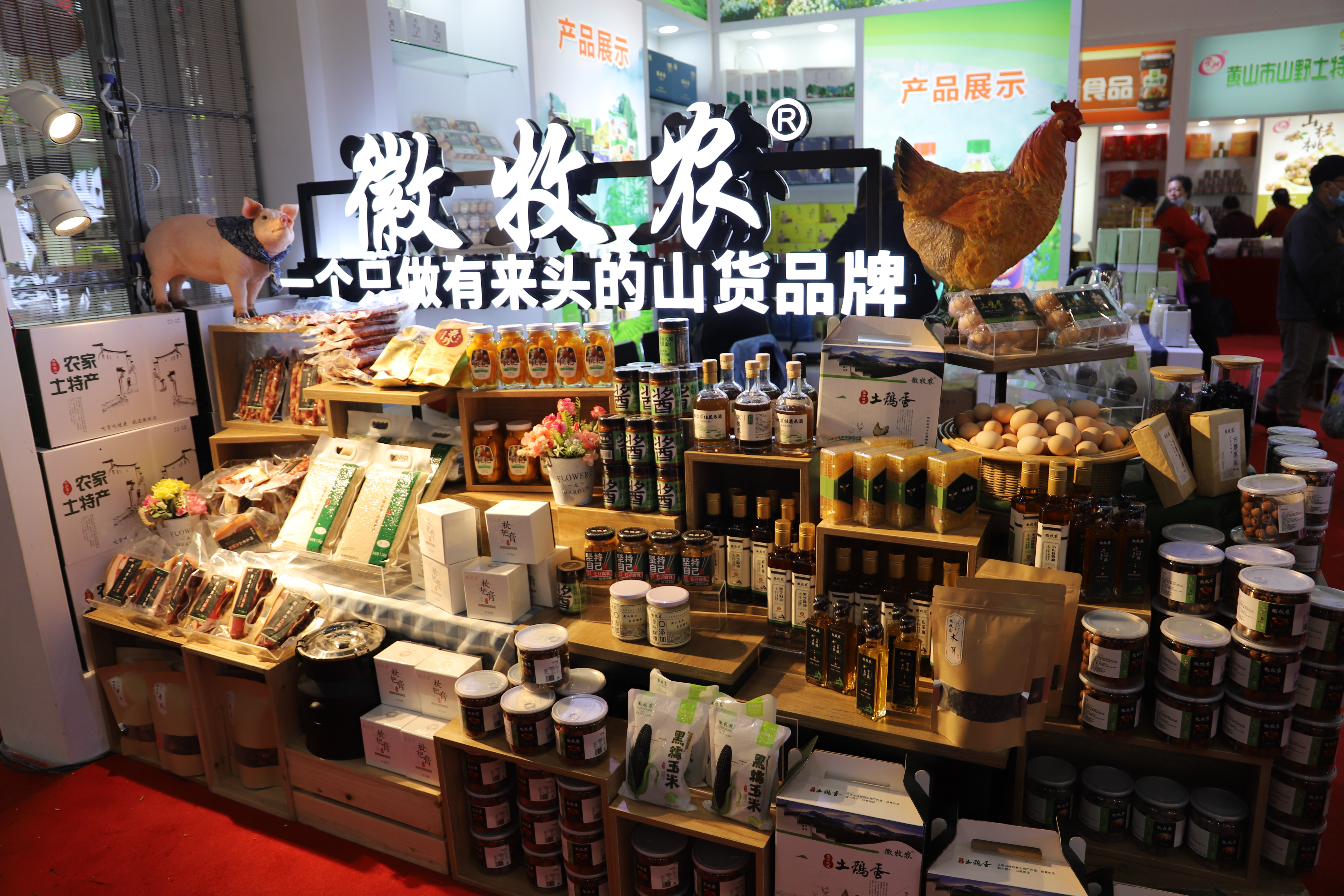 “徽牧农,一个只做有来头的山货品牌”的标语在黄山市展厅内异常醒目,旁边是枇杷、黑玉米、腊肉、木耳等农产品。“这些都是黄山本地的优质农产品,我们要做好品牌,培育出健康、生态、纯净、天然的农产品,让黄山本土优质农产品走进长三角乃至全国。”黄山天润发超市总经理、黄山市温州商会副会长王朋说道。他利用自身优势多举措推进“农商对接”、打造精品农业,以消费带动黄山农村产业扶贫。