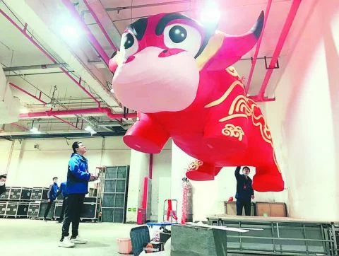 然而,“墨小牛”在北京进行总装后到春晚彩排现场的第一次试飞却并不顺利。“室内外温差达到30多度,进去之后,‘墨小牛’就被其内部气体撑破了。”马承刚介绍,当时已经凌晨5点,他和团队成员紧急将“墨小牛”抬出室外维修。“在央视准备节目期间,我们熬了3个通宵。”