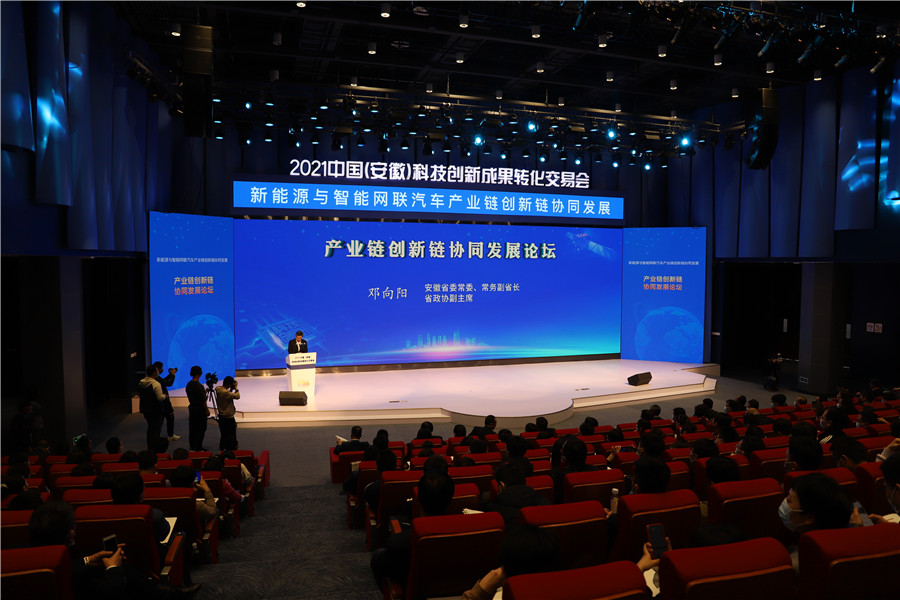 本网讯(记者 史洪芳)4月27日下午,2021中国(安徽)科技创新成果转化交易会——产业链创新链协同发展论坛在安徽创新馆举办。论坛以“新能源与智能网联汽车产业链创新链协同发展”为主题,知名企业家、专家学者等200余人参会,共话新能源与智能网联汽车发展新征程。