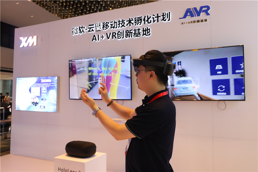 与洲明科技同样利用混合现实技术的是微软HoloLens 2混合现实设备。这套设备在医疗教学、汽修教学、VR游戏等民生领域应用广泛,参观者戴上这套装备便可以看到空中的显示屏和操作屏,手直接在空中点击即可。影石科技的Insta360 VR全景相机集5.7K高清全景视频拍摄与超广角平面视频拍摄为一体,在旅行、日常生活、运动中创造出高质量影像。立体通裸视三维智慧膜产品只需在手机、iPad上外贴一层膜就可裸眼享受真实震撼的3D观影、3D游戏、3D社交。