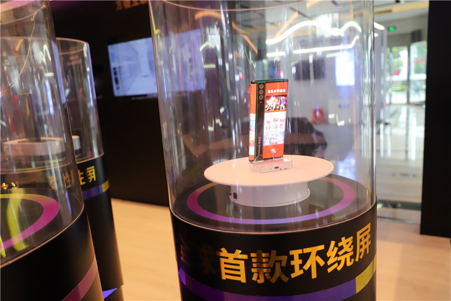 在展示现场,折叠屏产品丰富多样,包括对折、三折、360度折、卷轴等多种形式。京东方带来全球首款360度折叠柔性显示屏吸引了参观者的目光,这种柔性显示屏采用多中性层模型设计,有效降低了柔性“外折”和“内折”的应力。TCL华星展示的形状像书卷的16.9英寸打印式OLED卷轴屏,基于高精度喷墨印刷工艺制造,无需使用精细金属掩模版,更利于大尺寸及大规模量产使用。