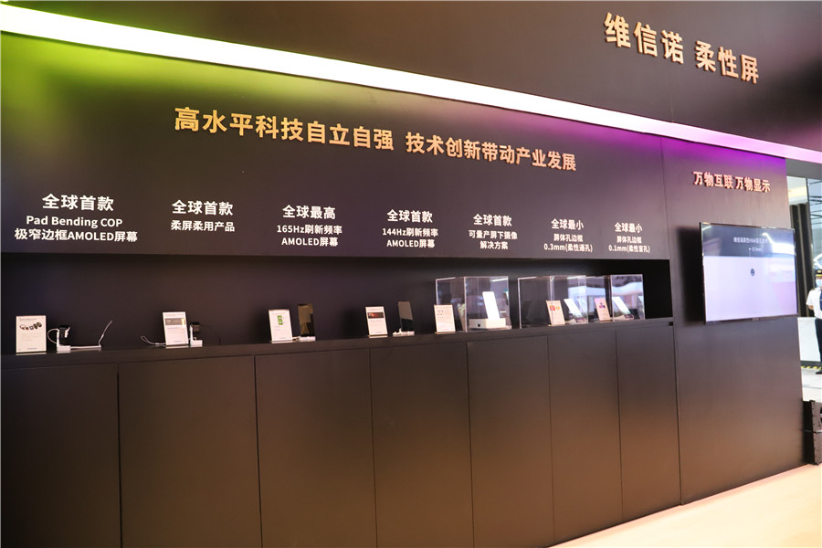 维信诺的屏下摄像解决方案InVsee Pro首次于线下进行展示,在提高像素密度的同时扩大透光通道,使显示与摄像的平衡全面升级。维信诺全球首创的“一驱多阵列设计”是屏下摄像的关键底层专利,基于“一驱多阵列设计”的量产导入优势,搭载InVsee Pro屏下摄像方案的应用终端也即将发布。全球最高刷新率165Hz AMOLED手机屏、低至0.1mm的HIAA极致开孔产品展示了维信诺最新的创新“视界”。