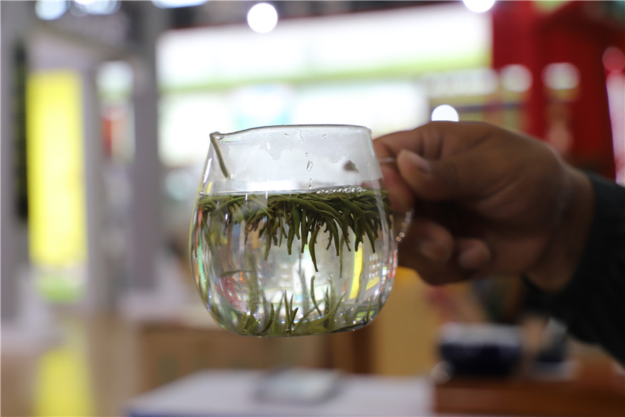 茶博会上,不仅有令人眼花缭乱的茶叶,还有一系列以茶叶为原材料制成的饮品、化妆品等茶叶衍生品,这些新产品大大提升了茶叶的附加值。省部共建茶树生物学与资源利用国家重点实验室展厅内,通过图片、实物等多种形式来展示茶叶科技成果,助推茶产业转型升级。展架上摆放着的玉米须黄大特茶以霍山黄大茶为原料,入口甘甜清润。霍山黄大茶原本是低档产品,后经实验室实验证实,其具有显著的辅助降血糖、降血脂等功效,系列基础研究成果为开发以健康为导向的功能性茶产品提供了科学依据,带动了皖西茶区茶产业的飞速发展。