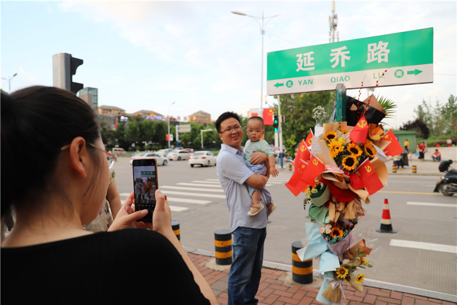 “现在的年轻人爱国爱党意识很强,真好啊。”住在附近小区的王先生说,“一个国家想要发展,必须要有强大的民族凝聚力,一定要敬仰英雄。”王先生看到不断有年轻人前往献花,感到很欣慰。家住北城的李女士带着上小学的女儿来到延乔路,让孩子向路牌行少先队员礼,并和大家一起认真听桃花镇繁华新园社区志愿者讲解员介绍陈延年、陈乔年的生平和事迹,她告诉女儿:“你要记住,他们是国家的大英雄。”
