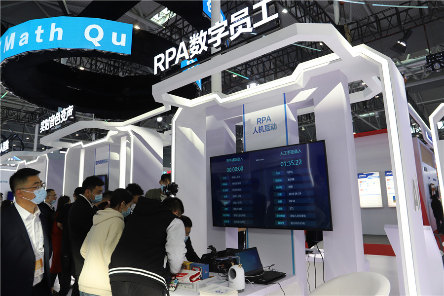 科大讯飞股份有限公司带来一系列人工智能产品,展示了讯飞听见智慧屏、讯飞听见智能会议系统等产品打造的AI智慧会议室。科大讯飞还以人工智能为核心,大数据和RPA(机器人流程自动化)技术作支撑,深入企业核心业务主流程,围绕企业生产经营中的办公、财务、招聘、生产、营销、客户服务等实际工作场景构建系统化解决方案,为企业打造“数字员工”,助力企业加速全业务链条数字化转型升级。企业员工能进一步从重复性劳动中解放出来,转向更具创造力的岗位。