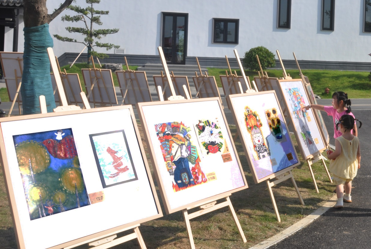 少儿书画展吸引小朋友驻足观看
