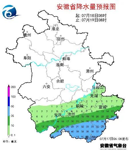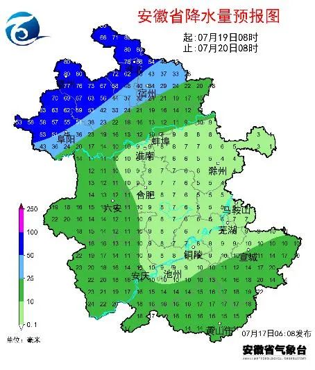 据安徽气象7月17日消息,预计17日至21日我省有一次明显降水过程,并伴有短时强降水和8级左右雷暴大风等强对流性天气,其中17日淮河以南部分地区中到大雨,局部暴雨;18日沿江江南部分地区中到大雨,局部暴雨;19日沿淮淮北部分地区和大别山区大雨到暴雨,局部大暴雨;20日至21日江北部分地区中到大雨,局部暴雨。22日至23日江北仍多阵雨或雷雨;江南多云,最高气温普遍超过35℃,大部分地区将出现高温天气。预计未来一周全省高温天气有所缓和。