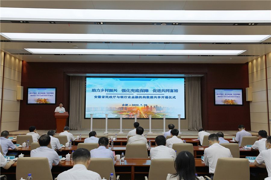 本网讯(记者 史洪芳)为完善覆盖全面、分层分类、综合高效的社会救助体系,健全低收入人口动态监测和常态化帮扶机制,加强社会救助信息互通、数据共享,确保兜住兜准兜好底,实施高效精准公平救助,7月29日上午,“助力乡村振兴 强化兜底保障 促进共同富裕”——安徽省民政厅与银行业金融机构数据共享开通仪式在合肥举行。