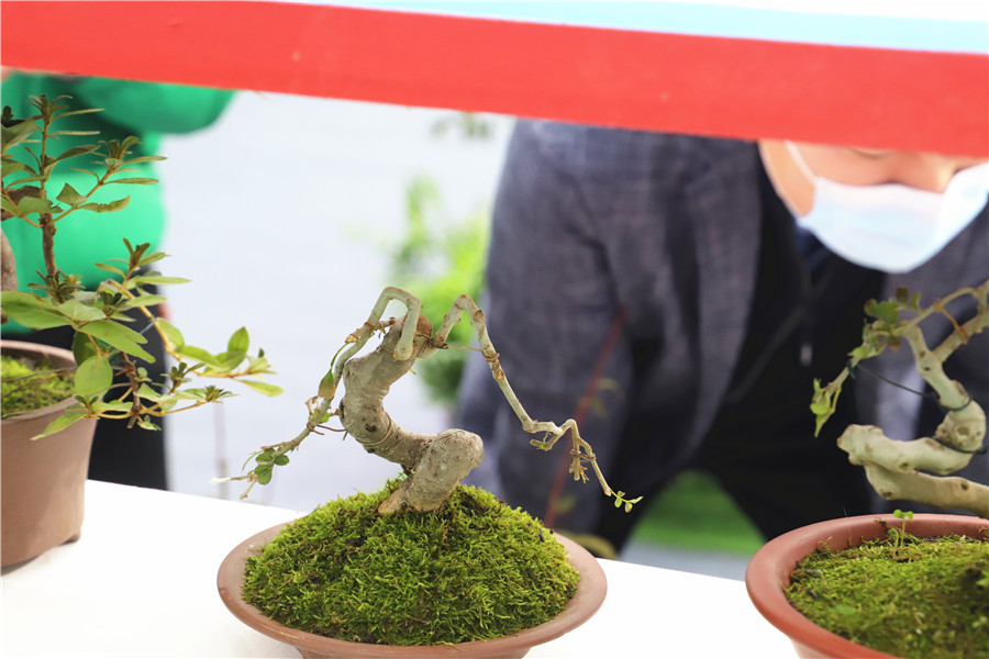 束克云同时也是束苑盆景艺术园园主,非常重视盆景技艺的传承。艺术园充分发挥省级非物质文化遗产传承基地功能,常年对外免费开放,通过举办展览、示范授课、发布抖音教学视频等方式,扩大了盆景技艺的受众面,培养了许多年轻人对大别山盆景制作的兴趣,摸索出一条园区展示、基地生产、教学创作、网络销售的发展模式,拓展了大别山盆景技艺的传承途径。