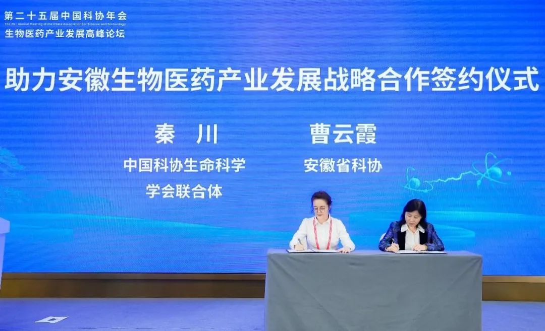 以本次论坛的召开为契机,中国科协生命科学学会联合体发挥所属23家全国学会的学术资源优势,发挥国家级学会和地方科协组织在团结引领科技工作者、服务地方科技经济融合方面的作用,助推安徽生命健康领域提升自主创新水平。在开幕式上,中国科协生命科学学会联合体与安徽省科协签署了《助力安徽生物医药产业发展战略合作协议》。中国卒中学会与南京宁丹新药技术有限公司签署战略合作意向书,共同合作成立“卒中领域技术转化天使基金”,在全国范围内推动创新科技成果转化、技术孵化等工作。