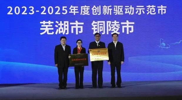 会上,还为获得中国科协“2023-2025年创新驱动示范市”称号的芜湖市、铜陵市进行授牌。