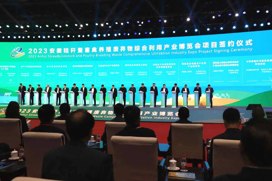 安徽秸博会已成功举办六届,共签约项目625个、总金额1224.4亿元;已开工589个、投产264个,到位资金616亿元,成为产业招商引资重要平台。与往届相比,今年博览会签约项目体量大,重点签约项目5000万元以上的有108个,其中,亿元以上的82个、5亿元以上的9个、10亿元以上的3个。肉牛产业成为投资新热点,签约项目涉及“秸秆变肉”暨肉牛振兴计划的近50个、投资金额约80亿元,分别占项目总数和签约金额的三分之一。秸秆高值化利用项目多,能源化、原料化利用项目签约金额100多亿元、占比接近50%。