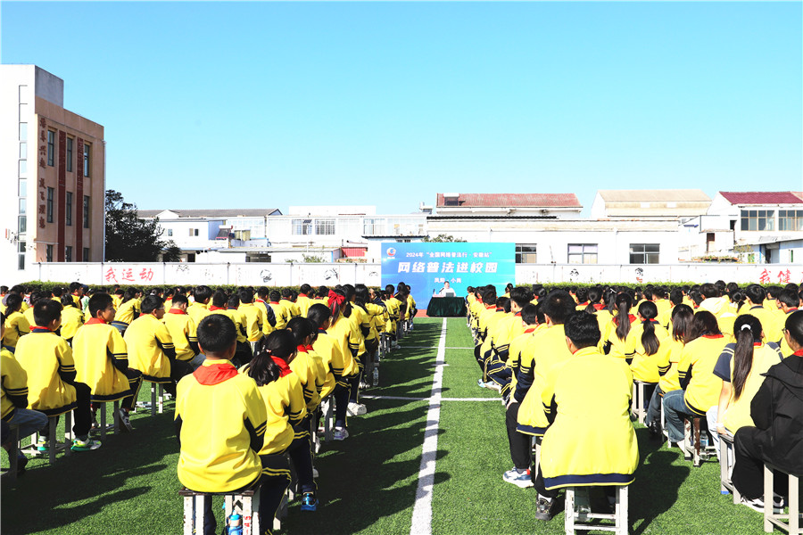 据小岗学校八年一班班主任周钦老师介绍,学校充分利用“开学第一课”、法治副校长专题讲座、主题班会课、国旗下讲话、趣味答题竞赛等形式开展网络普法教育,重点宣传《宪法》《民法典》《未成年人保护法》《网络安全法》《预防未成年人犯罪法》等与未成年人学习生活密切相关的法律法规。同时,还会结合当下社会热点事件,以案释法、以事论理,引导学生合理科学上网,增强其对网络不良信息辨别能力,抵制和举报各种网络不文明行为。