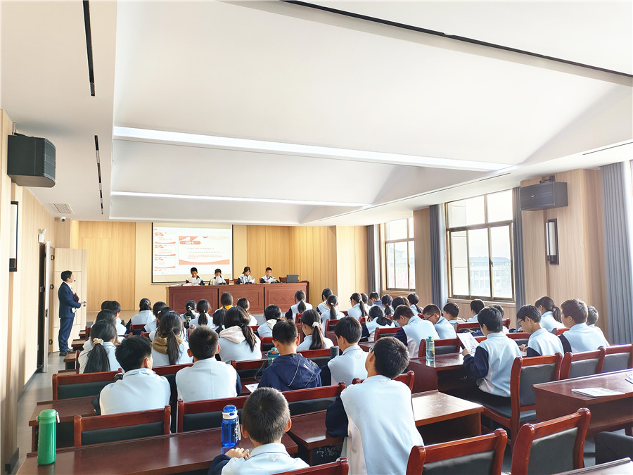 “不良行为包括旷课、夜不归宿、携带管制刀具、打架斗殴、辱骂他人……”11月1日,六安市霍山县青少年教育活动中心举行了一场特别的普法分享会,台上的四位黑石渡镇中心学校学生作为普法宣传员进行了普法宣讲,台下学生们正襟危坐认真聆听。随后,学生们转至另一处进行了一场模拟法庭活动,审理一起因网络辱骂和捏造不实信息引发的未成年人故意伤害案。