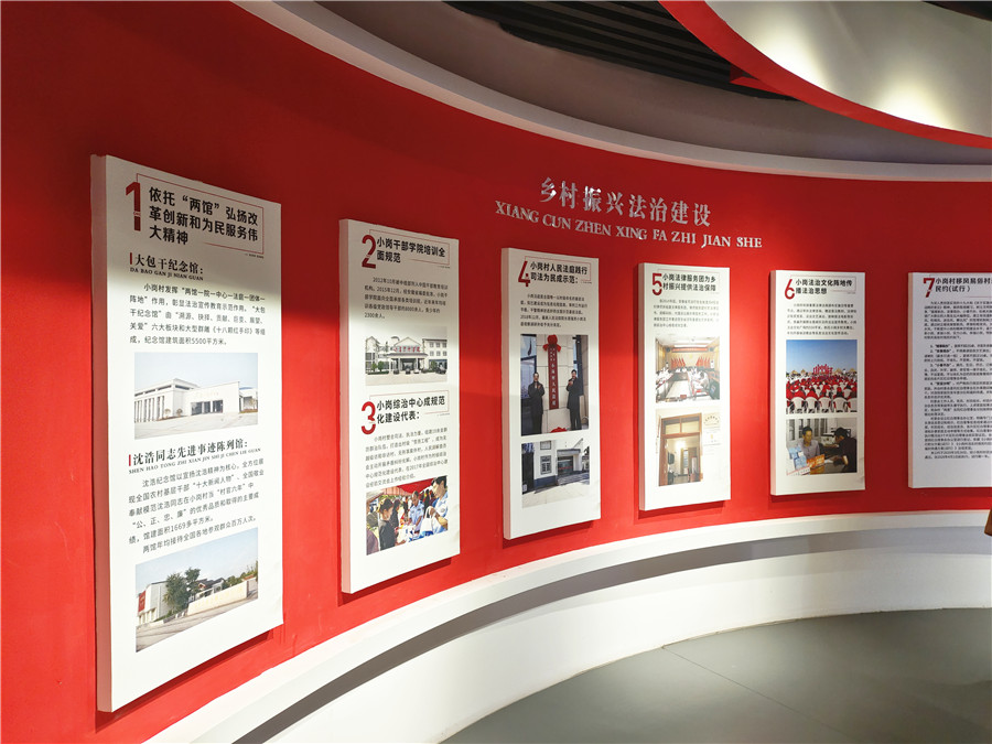 “普法内容没有文字堆砌,而是以各种简单造型营造氛围。”相关负责人告诉记者,为达到最大宣传效果,对与小岗学校仅一墙之隔的凤阳县网络普法主题广场花了很多心思设计。记者看到,有的展板是方块翻转,网络诈骗、网络个人信息等简洁文字翻转到背面便是相关法律知识;有的展板上设置了二维码,里面有各种普法图片、视频、动漫,增加了趣味性。据悉,学生上下学、家长接送学生都要经过,可以在日常生活中潜移默化地让法律知识入脑入心。“只要大家愿意看了,就起到宣传效果了。”在主题广场旁边还矗立着一座小岗村法治文化教育馆,该馆集体验性、参与性、互动性为一体,两者形成室外室内普法宣传搭配。