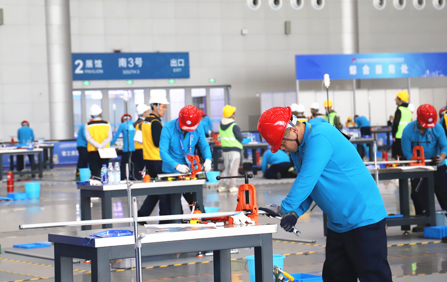 来自安徽代表团的管工比赛金牌得主何子航告诉记者,从预赛到决赛,他通过阅读管工理论相关专业书籍和观看比赛视频进行学习,极大提高了技能水平。