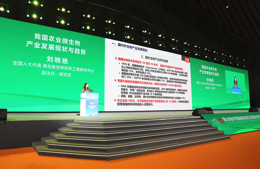会上,全国人大代表、湖北省生物农药工程研究中心副主任刘晓艳作题为《我国农业微生物产业发展现状与趋势》的报告,全国政协委员、中国农业科学院藤菜花卉研究所二级研究员李宝聚作题为《蔬菜绿色防控的瓶颈问题分析与解决路径探索》的报告……多位农业领域专家和农企负责人聚焦主要粮油作物大面积提升单产、蔬菜水果等农产品农残攻坚治理、投入品减量增效等重点任务,交流绿色防控技术进展,研讨推进绿色防控工作措施和意见建议。