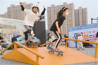 5月20日,2022无锡太湖购物节夏日消费季启动仪式在无锡大剧院南广场举行,同时启动的还有美味龙虾节、新能源汽车节等系列促消费活动。图为市民在启动仪式现场玩滑板。朱吉鹏摄(人民视觉)