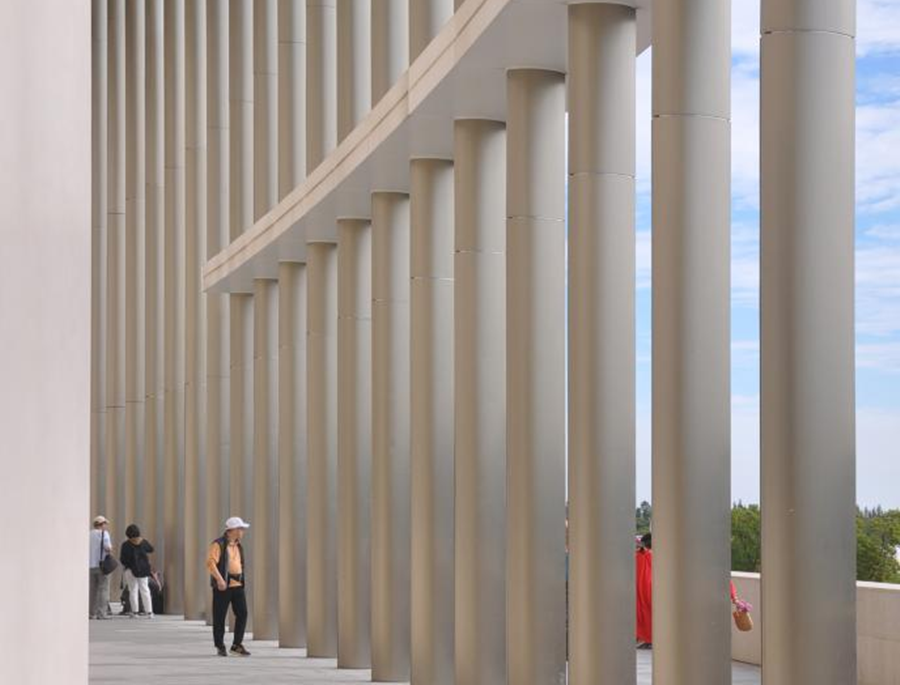 艺术、人文、建筑,在这里得到极为具象的融合发展。“这一片,是可以容纳2000人左右的森林剧场。”讲解员介绍道,九棵树未来艺术中心的绿化率达35%。从高处俯瞰,树林掩映下的森林剧院如在画中,让人不自觉想要走入其中,感受自然与艺术交融的悠长韵味。
