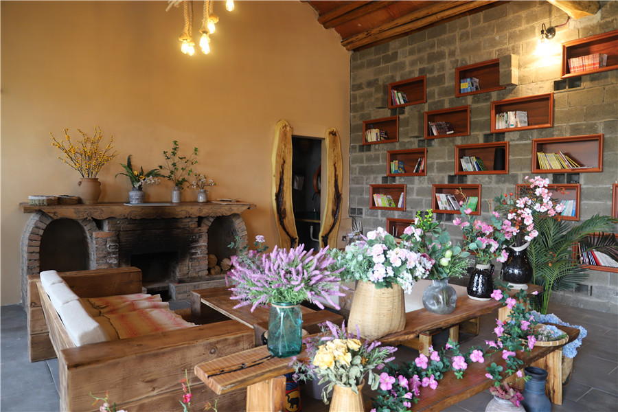 在进入梨树王景区前,路过一个特殊的村子——魏寨民俗村。村内房屋墙面上几乎都是鲜艳有趣的墙绘,且村内绿化较好。在路边,一家名为“听荷书屋”的精致农家小院极为引人注目。院内鲜花盛开,客厅内有一整面墙的书籍、特色壁炉和开放式厨房,而卧室则是整洁干净的宽大土炕。这家于去年7月建成的民宿有十几间房,具备吃住、体验、艺术创作功能。“2016年我们开始做旅游和电商,现在从事旅游、电商、民宿的人由1000多人增加到1万多人,很多白领、大学生、退伍军人返乡创业,乡村振兴需要有文化有底蕴的年轻人。”镇党委书记刘建介绍。每年梨花节期间,150-200万以上的人流量为良梨镇带来巨大利润,而魏寨民俗村也从中受益,将被打造成为集艺术创作、生态旅游、休闲养生、观光农业于一体的新农村样板。