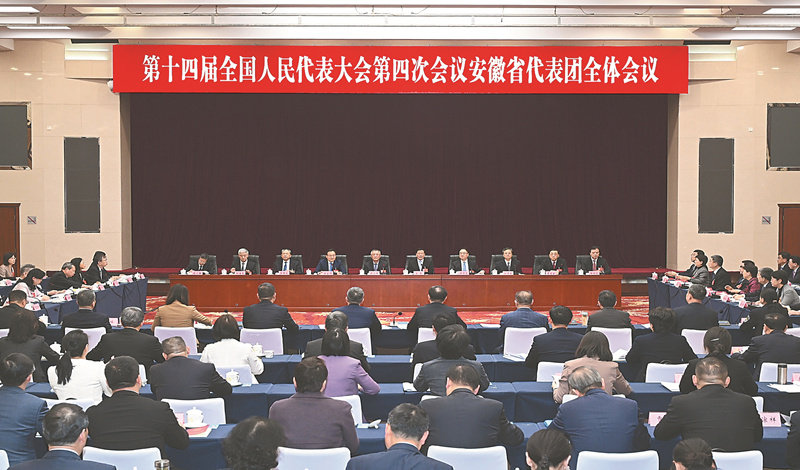 3月5日下午,十四届全国人大四次会议安徽代表团举行全体会议,审议李强总理作的政府工作报告。记者 杨竹 摄 (记者 范孝东 李浩 江敏)3月5日下午,十四届全国人大四次会议安徽代表团举行全体会议,审议李强总理作的政府工作报告。全...