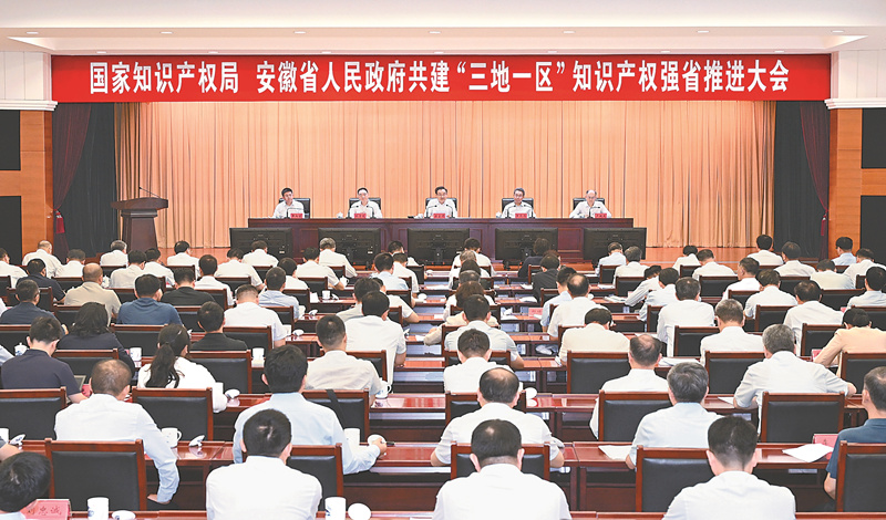 9月17日上午,国家知识产权局安徽省人民政府共建“三地一区”知识产权强省推进大会召开。记者 杨竹 许昊 摄 (通讯员 郑言 记者 李浩)9月17日上午,国家知识产权局安徽省人民政府共建“三地一区”知识产权强省推进大会召开。会议深入学...