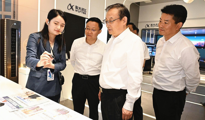 7月3日,省委书记梁言顺在科大讯飞股份有限公司调研。记者 杨 竹 摄 (通讯员 宗禾 记者 李浩)7月3日,省委书记梁言顺在合肥市调研,深入蔚来汽车、科大讯飞、阳光电源、大众汽车(安徽)有限公司、长鑫科技集团和安徽创新馆等,了解科技...